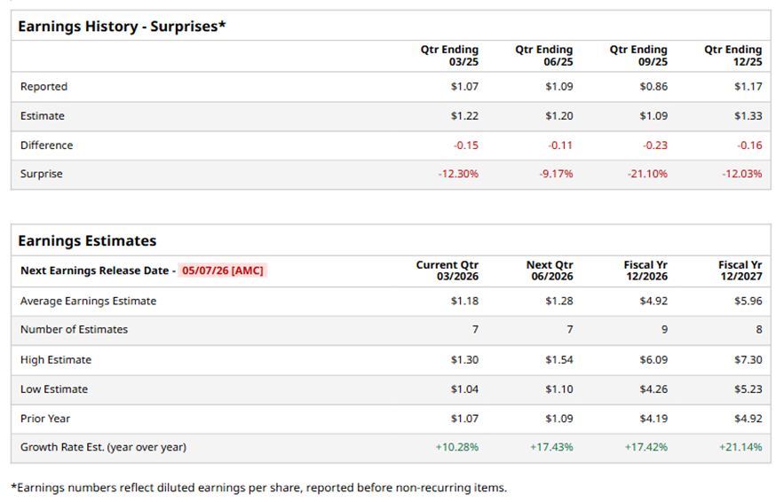 Ahead of the event, analysts expect WYNN to report a profit of $1.18 per share on a diluted basis, up 10.3% from $1.07 per share in the year-ago quarter. The company missed the consensus estimates in each of the last four quarters.