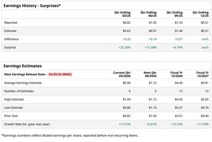 ETR is expected to release its Q1 2026 earnings on Wednesday, Apr. 29, before the market opens. Ahead of the event, analysts expect the company’s EPS to be $0.96 on a diluted basis, up 17.1% from $0.82 in the year-ago quarter. The company has met or exceeded Wall Street’s EPS estimates in each of its last four quarters.