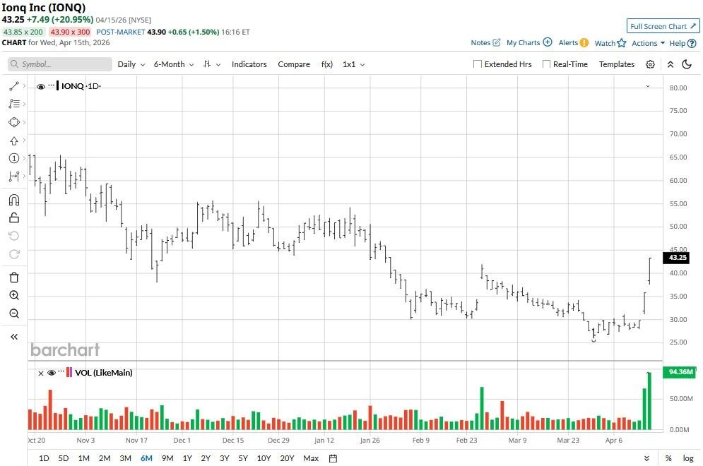 IonQ (IONQ) shares closed notably higher on April 15 after Nvidia (NVDA) announced its Ising AI models — a new open-source software suite designed to solve the twin hurdles of quantum error correction and calibration.