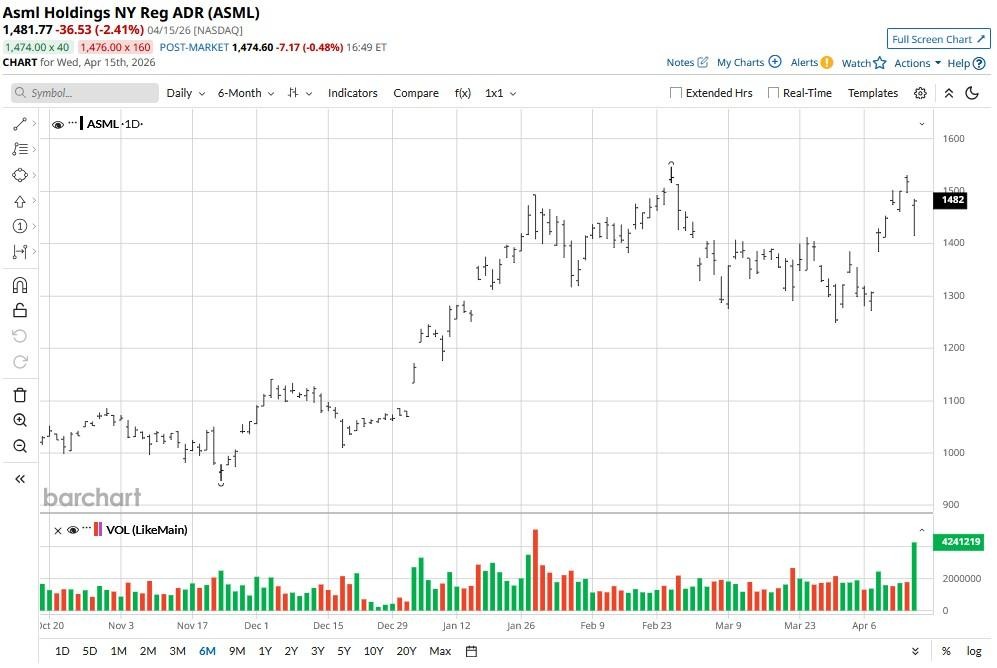 Despite the post-earnings dip, ASML stock remains up more than 25% versus its year-to-date low.