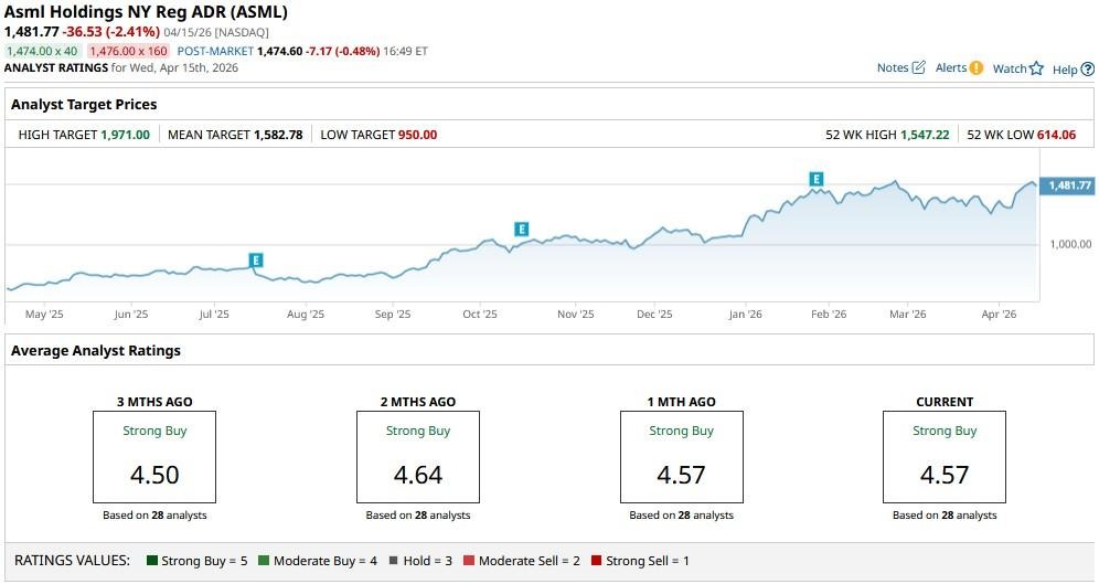 The consensus rating on ASML shares sits at “Strong Buy,” with price targets as high as $1,971, indicating potential upside of about 33% from here.