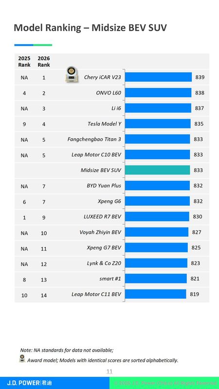 -- Market feedback is always the clearest measure of a product’s strength. On March 26, the global consumer insights and market research firm J.D. Power released the 2026 China New Energy Vehicle Automotive Performance, Execution and Layout (NEV-APEAL) Study. iCAUR V23 topped the mid-size pure electric SUV segment. This result highlights the model’s outstanding appeal and user experience, and reinforces iCAUR’s continued progress in the new energy sector.