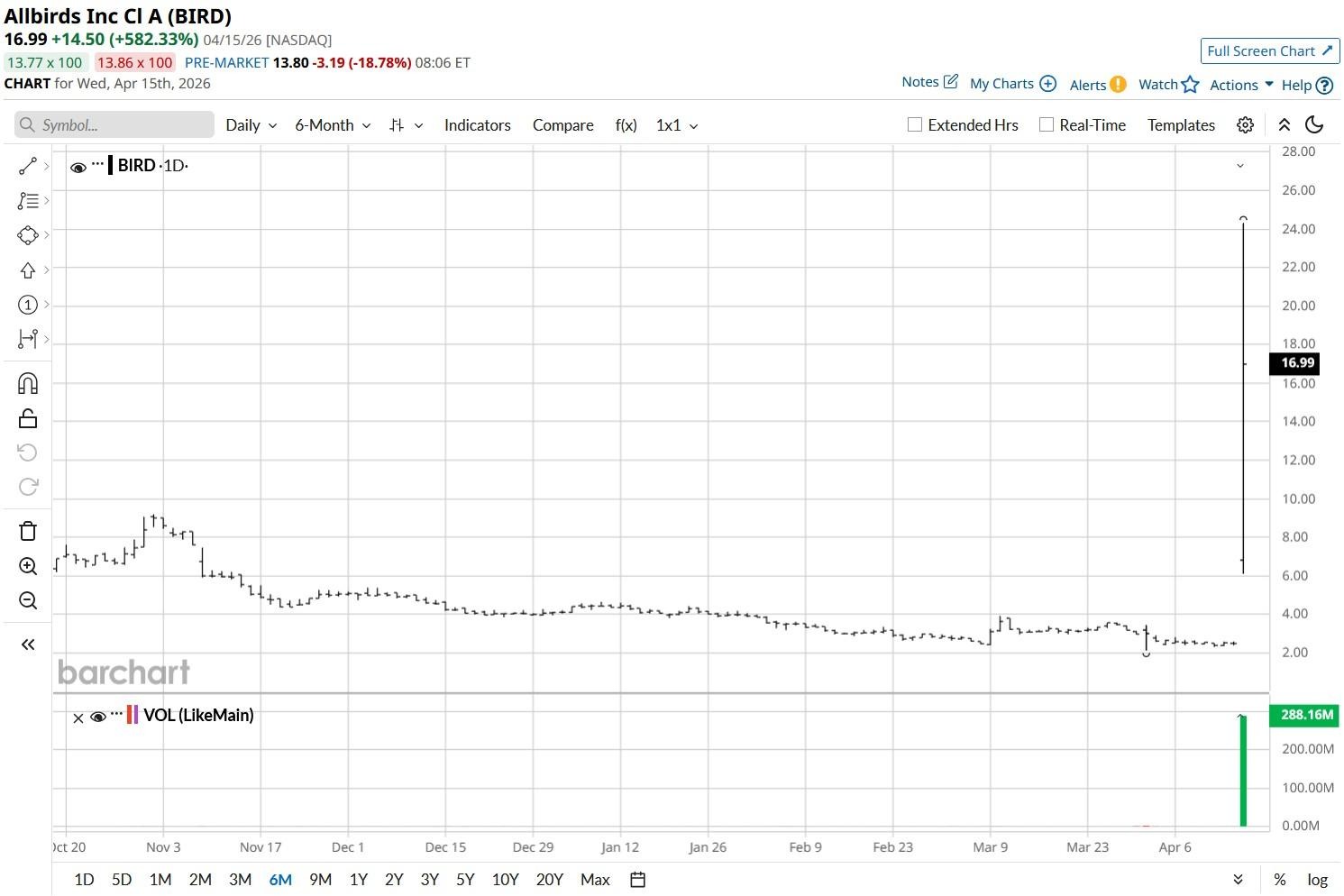Allbirds (BIRD) stock closed yesterday's session up a remarkable 600% after the footwear firm announced a pivot into artificial intelligence (AI) compute infrastructure.