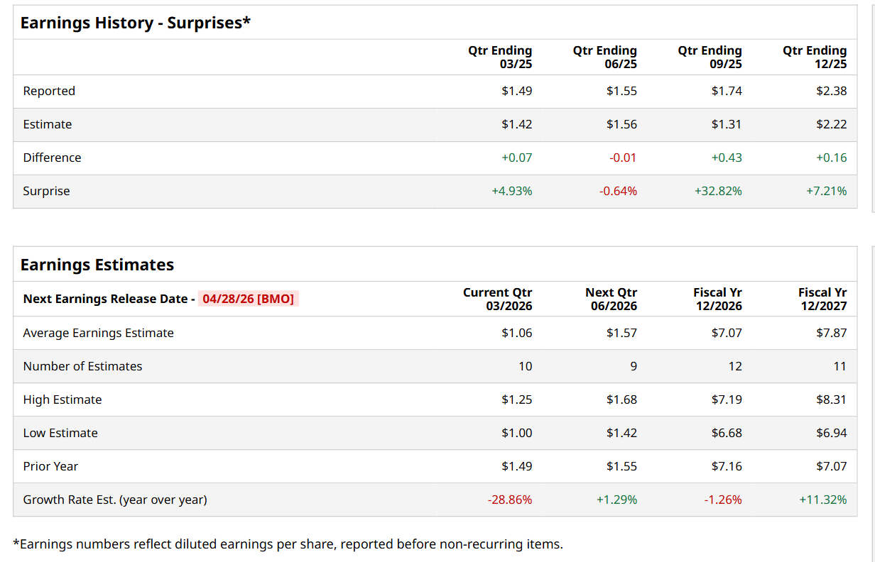 Atlanta, Georgia-based United Parcel Service, Inc. (UPS) is a package delivery and logistics provider that offers transportation and delivery services. Valued at a market cap of $87.9 billion, the company is scheduled to announce its fiscal Q1 earnings for 2026 before the market opens on Tuesday, Apr. 28.
