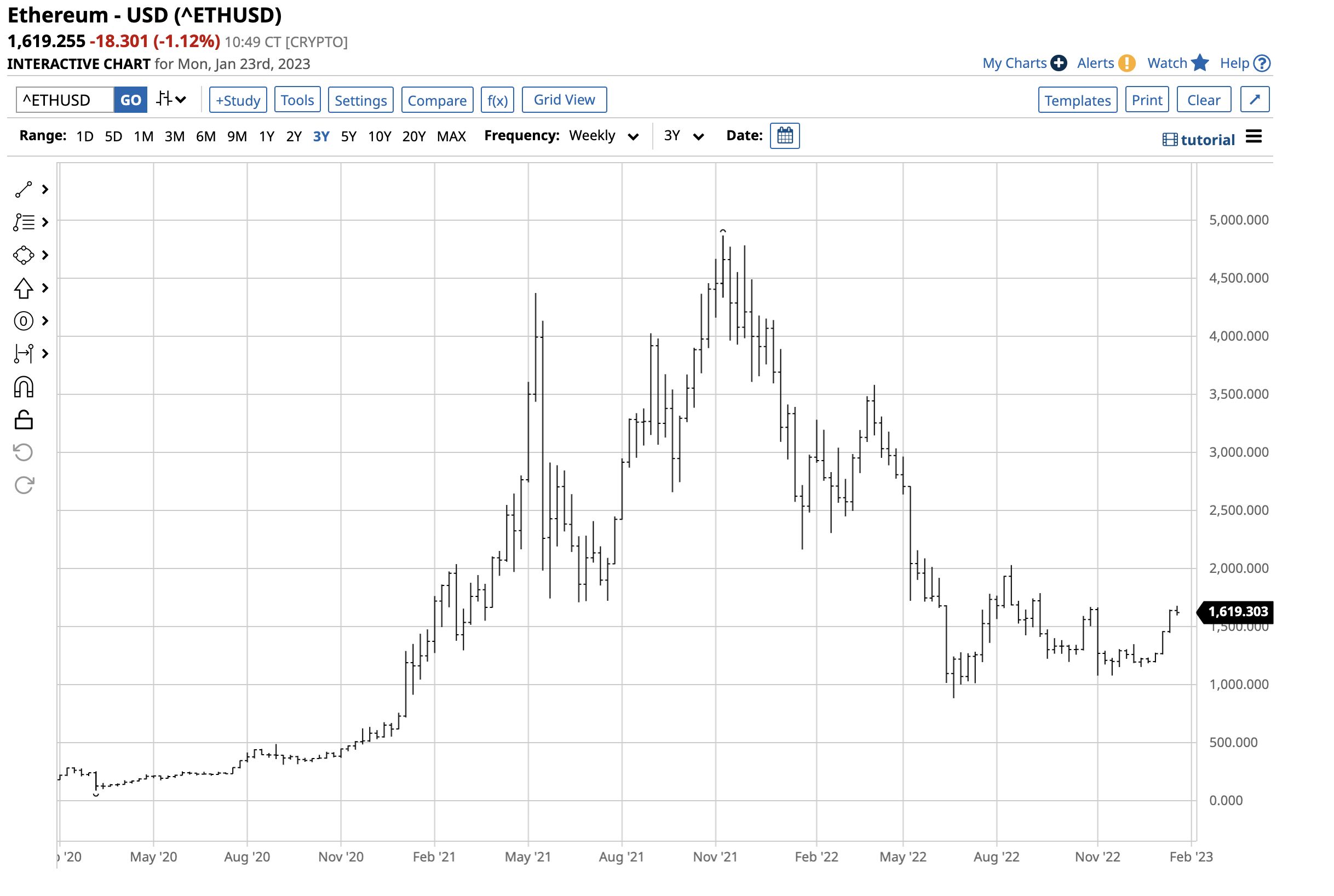 Bitcoin, Ethereum, and cryptos are recovering in early 2023, and time will tell if they blast off on the upside over the coming weeks and months. Anyone dipping a toe in the asset class should realize that the risk is a function of the potential rewards and only risk capital you are willing to lose.