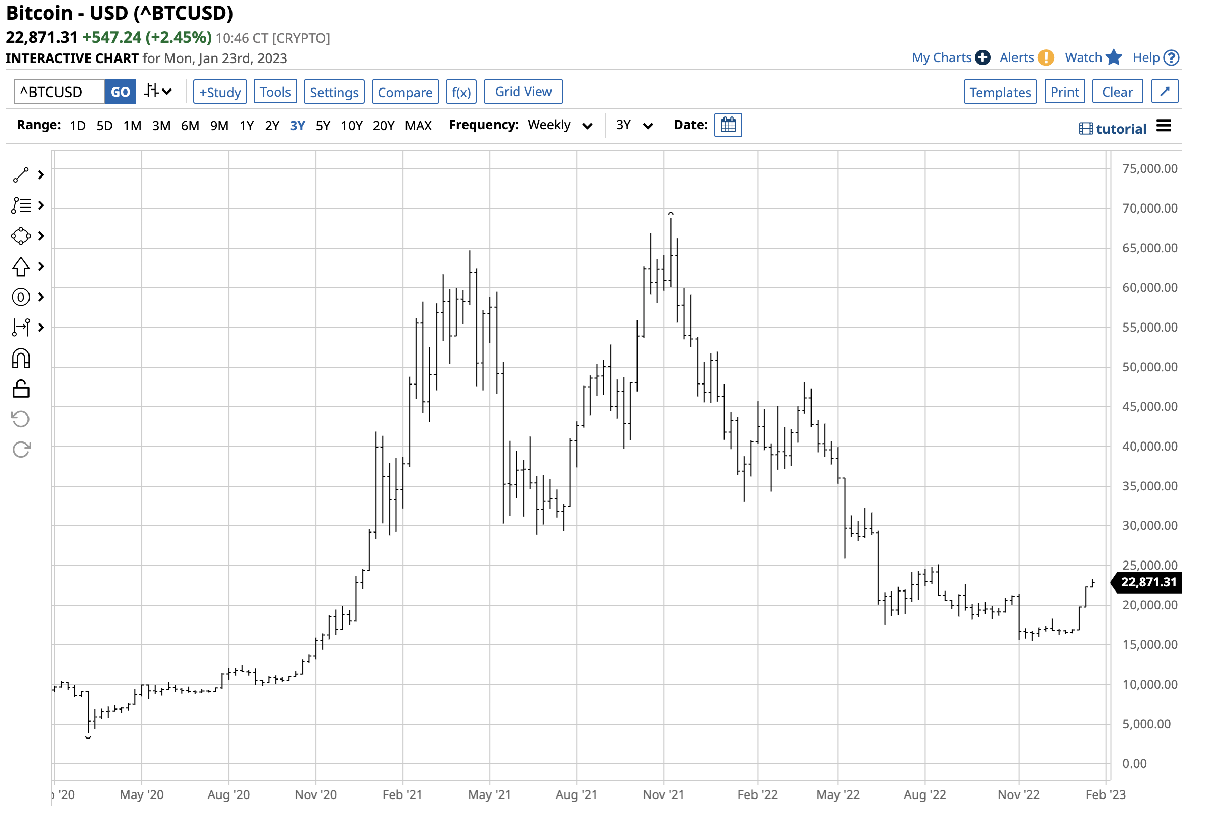 On December 21, in a piece on Barchart, I chronicled how the asset class was digesting a turbulent 2022. In that article, I pointed out, “Supporters point to Bitcoin’s bust and boom history, comparing the FTX debacle to Mount Gox’s 2014 bankruptcy. When the Mount Gox dust settled, Bitcoin’s dizzying rise continued, and many new cryptocurrencies burst on the scene.”