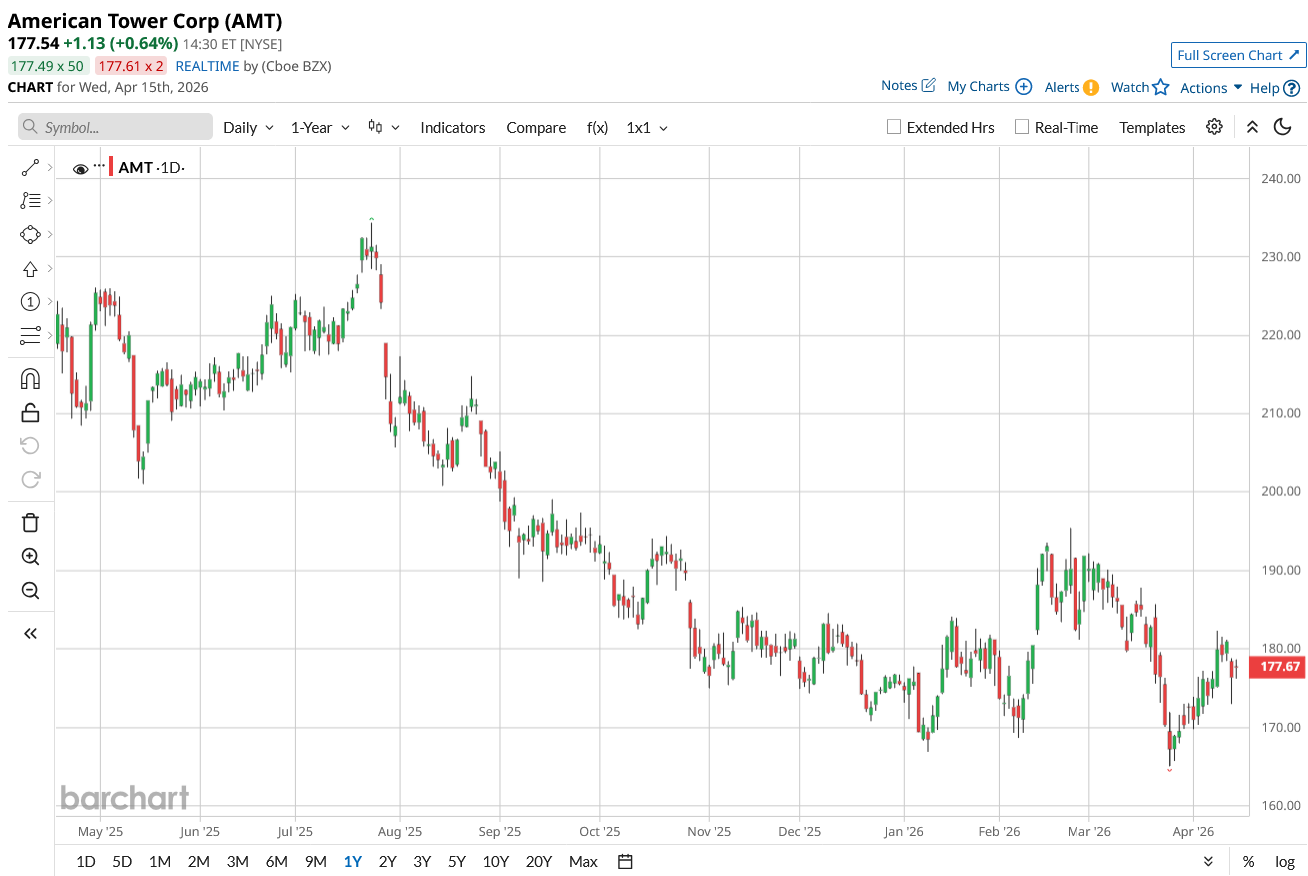 Over the past 52 weeks, AMT is down about 18%, though it remains slightly positive for the year, up 1.25% year-to-date (YTD).