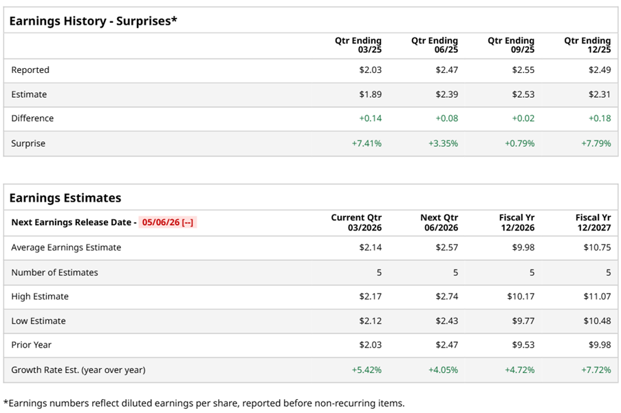 Vernon Hills, Illinois-based CDW Corporation (CDW) provides information technology (IT) solutions. With a market cap of $17.1 billion, the company offers hardware, software, computer peripherals, cloud computing, mobile devices, network communication, and security solutions. The leading multi-brand provider of IT solutions is expected to announce its fiscal first-quarter earnings for 2026 in the near term.