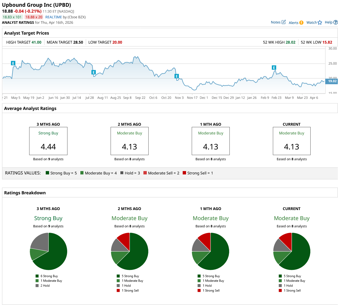 Overall, Wall Street says UPBD stock is a “Moderate Buy.” Of the eight analysts covering the stock, five rate it a “Strong Buy,” one rates it as a “Moderate Buy,” one says it is a “Hold,” and one recommends a “Strong Sell.”