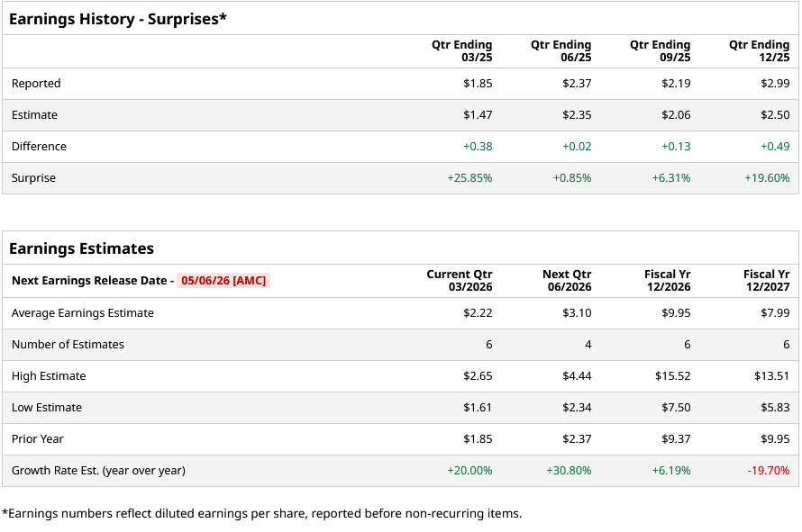 For fiscal 2026, analysts project the company’s EPS to be $9.95, up 6.2% from $9.37 in fiscal 2025. However, its EPS is expected to decline by 19.7% year over year (YoY) to $7.99 in fiscal 2027.
