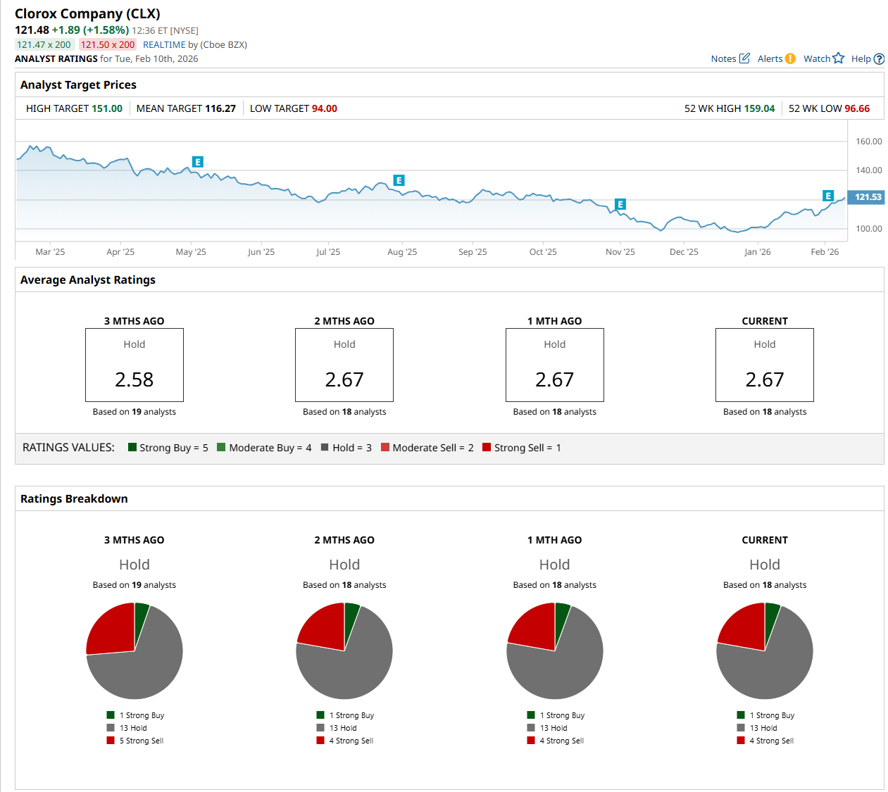 On Feb. 5, Morgan Stanley (MS) analyst Dara Mohsenian maintained a “Hold" rating on CLX and set a price target of $136, indicating a 12% potential upside from the current levels.