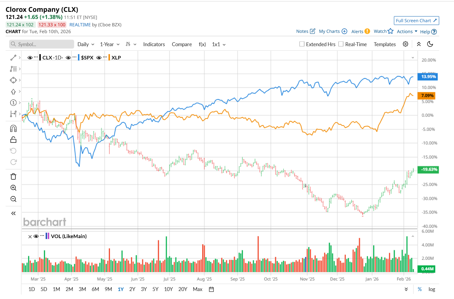 Narrowing the focus, CLX has also underperformed the State Street Consumer Staples Select Sector SPDR ETF’s (XLP) 9.1% rise over the past 52 weeks. Nonetheless, it has outpaced XLP’s 12.2% YTD uptick.