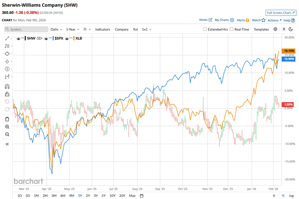 Shares of Sherwin-Williams have underperformed the broader market over the past year. SHW stock has risen 1.5% over this time frame, while the broader S&P 500 Index ($SPX) has returned 14.9%. However, shares of the company are up 12.5% on a YTD basis, outpacing SPX’s 1.8% gain.