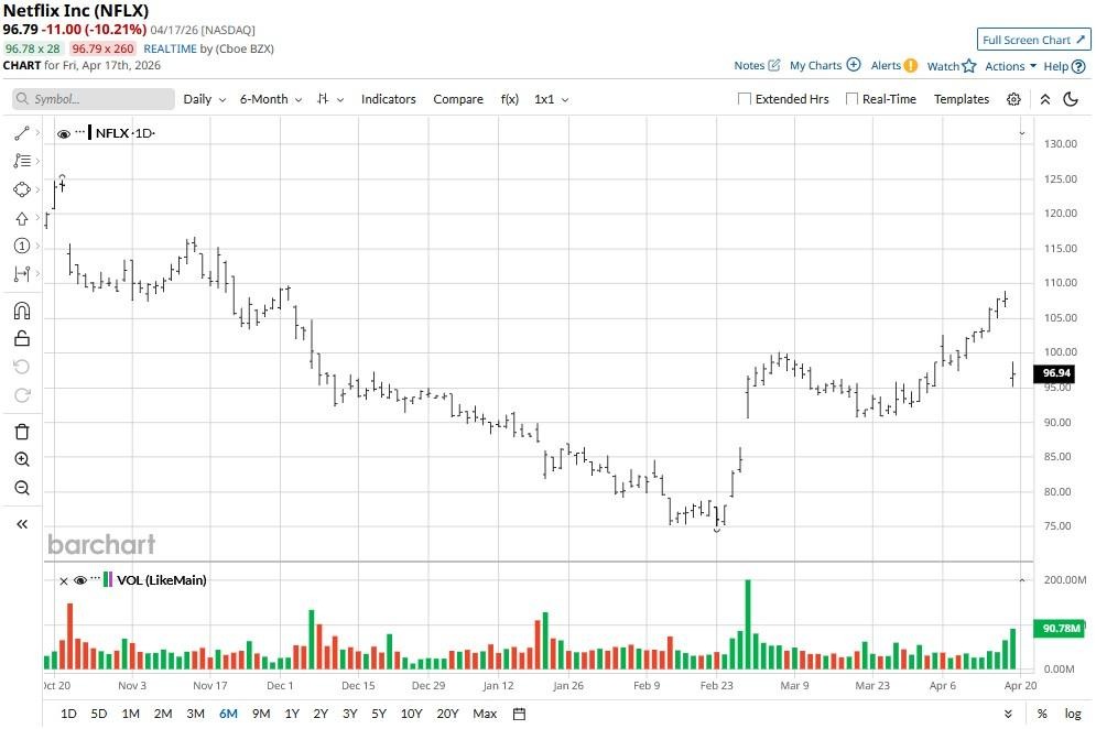 The post-earnings slump has NFLX hovering just above its 50-day moving average (MA), with a decisive break below $92 expected to accelerate bearish momentum in the near term.
