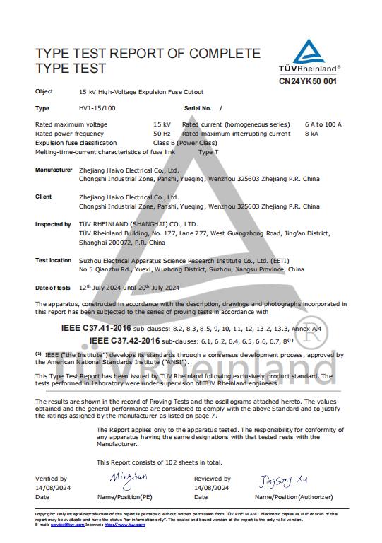 After the testing was completed, we waited for the official results. Finally, on January 4, 2026, the test certification report was issued. This report confirms that their 3–36kV surge arresters have passed the KEMA tests and meet the required international standards.