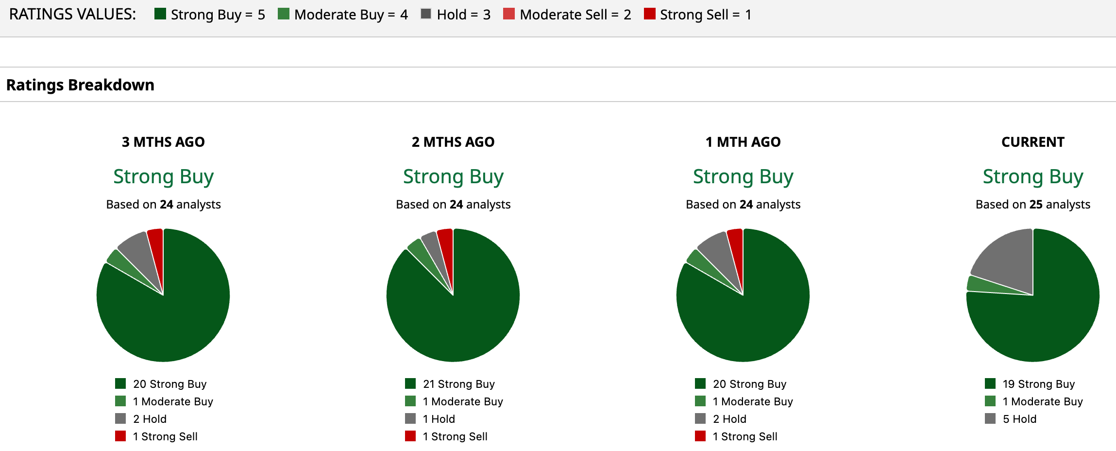Alibaba is gaining praise on Wall Street, with analysts awarding it a consensus “Strong Buy” rating overall. Of the 25 analysts rating the stock, 19 have given it a “Strong Buy” rating, one a “Moderate Buy,” and five a “Hold.” The consensus price target of $182.33 represents a 29.3% upside from current levels. Moreover, the Street-high price target of $206.10 implies a 46.16% upside.