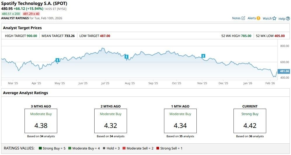According to Barchart, the consensus rating on Spotify stock remains at a “Strong Buy,” with the mean target of about $733 indicating potential upside of more than 45% from here.