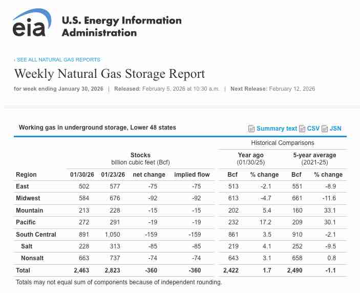 According to the EIA, natural gas stockpiles declined 360 billion cubic feet for the week ending on January 30, 2026.