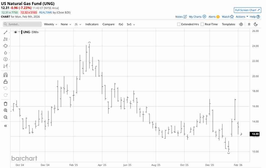 Natural gas is a seasonal commodity that typically reaches annual highs during the coldest winter months, when heating demand peaks. In my January 15, 2026, Barchart report on energy commodities in Q4 and 2025, I wrote the following on the prospects of NYMEX natural gas futures prices in early 2026: