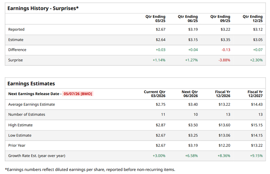 For the full year, analysts expect MCD to report EPS of $13.22, up 8.4% from $12.20 in fiscal 2025. Its EPS is expected to rise 9.2% year over year to $14.43 in fiscal 2027.