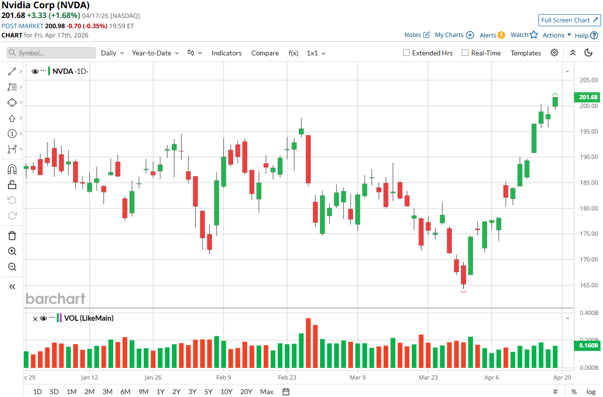 Shares of the AI darling have gained 7% on a year-to-date (YTD) basis. Earlier this month, the stock logged 11 consecutive days of gains, its longest winning streak on record dating back to 1999. The record rally came as investors renewed their enthusiasm for the AI trade, thanks to improving risk sentiment amid hopes that the U.S. and Iran would ultimately reach a peace agreement.