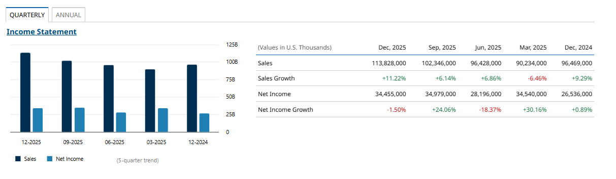 Let's look at the hard numbers. Alphabet showed stunning results for 2025. Annual revenue reached $402.8 billion, marking 15% growth year-over-year (YOY), and net profit soared to $132.1 billion, marking 32% growth. Currently, the trailing price-to-earnings (P/E) multiple is about 31 times. For a tech leader with such cash generation pacing, this is an absolutely fair and adequate valuation. The company has an excellent cash flow, earns huge money, and there are no bubbles in this valuation.