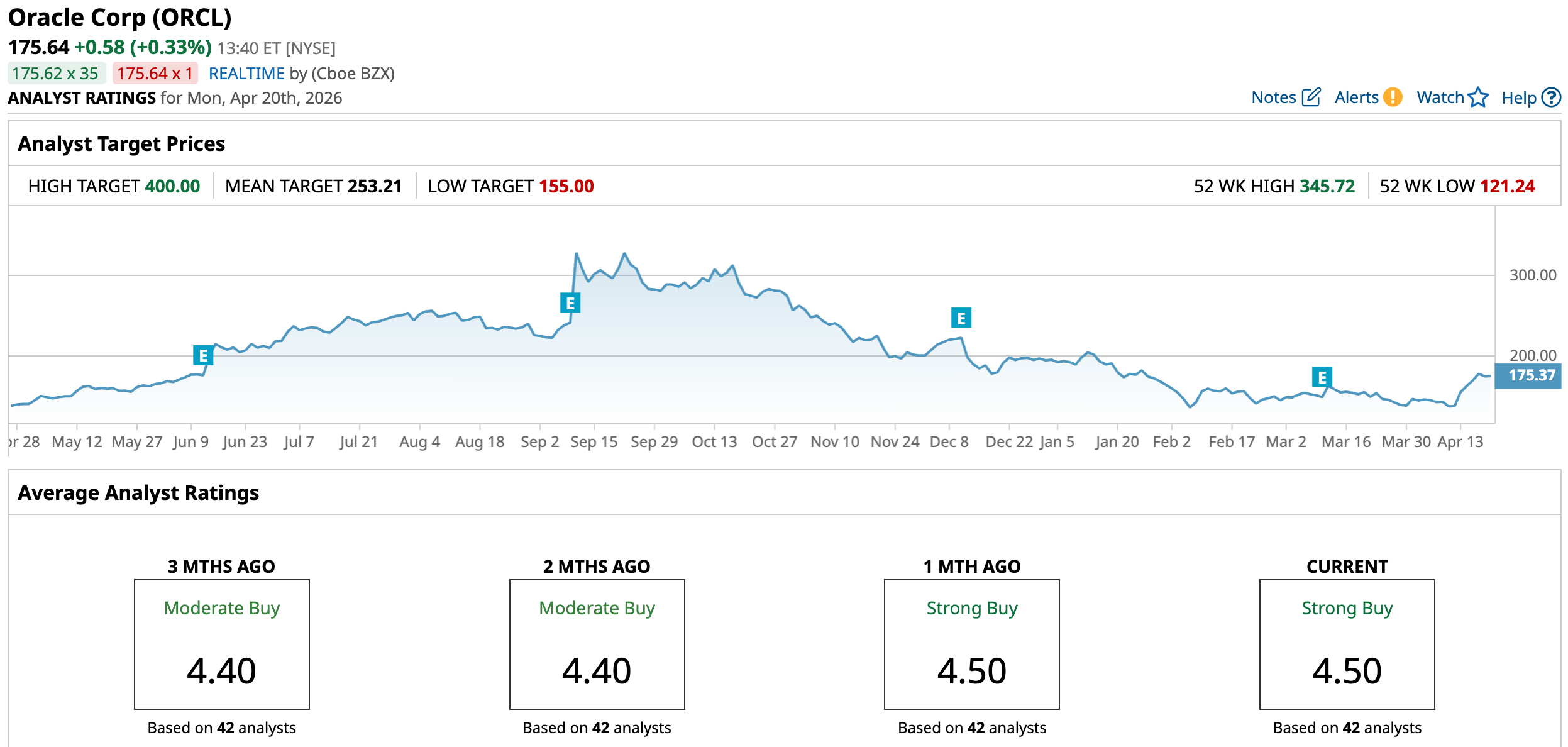 Backing up this bullish sentiment is the significant upside analysts still see ahead. The average price target of $253.21 implies a 44.2% potential gain from current levels, while the Street-high target of $400 points to an even more ambitious 127.8% upside, signaling that, in the eyes of many, Oracle’s growth story may still have plenty of room to unfold.