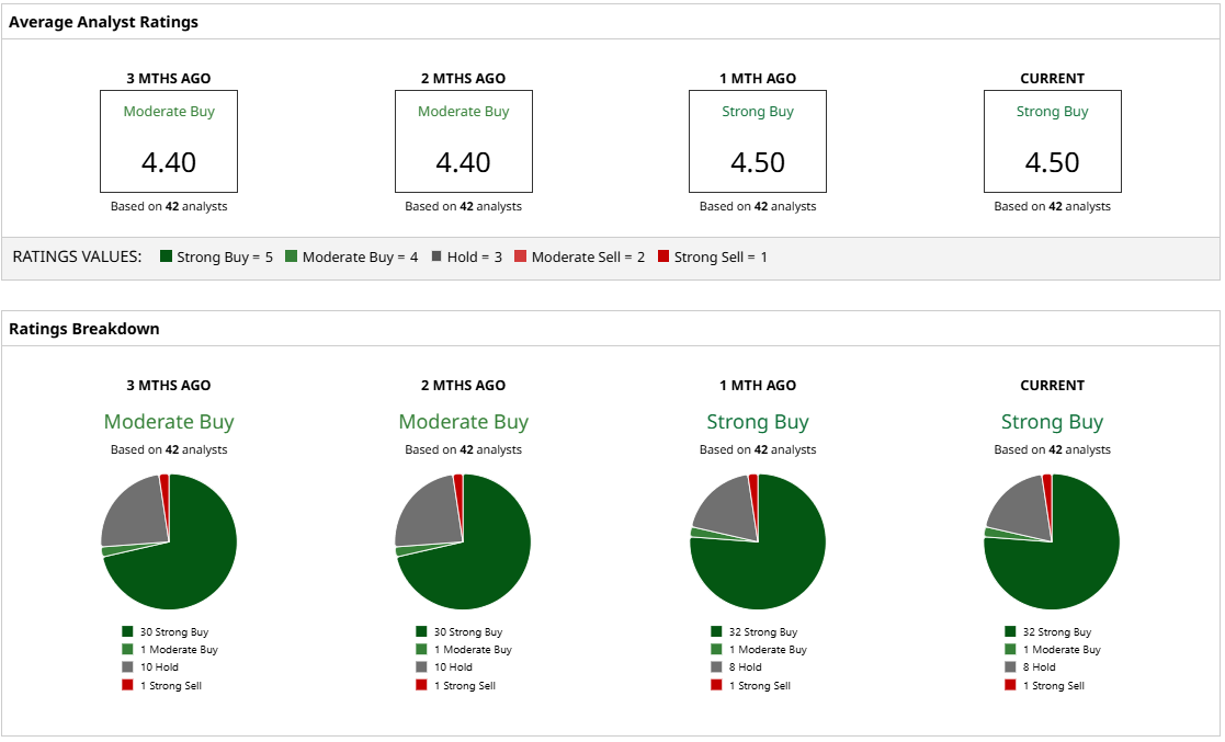 Analysts are strongly bullish on Oracle, with the consensus rating of 42 experts calling ORCL stock a “Strong Buy.” Only one has a “Strong Sell” rating, while eight suggest holding and the other 33 recommend that investors buy Oracle.