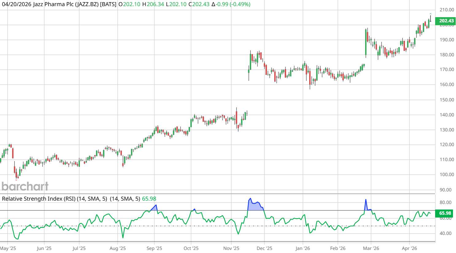 “Maybe it's just the algos reacting to Sunday's news, or today's date, but the cannabis space is up today. Putting the two together, one of the stocks on our cannabis watchlist – and one that I own – is Jazz Pharmaceuticals (JAZZ), which has been at the forefront of cannabis derivative drugs. Nice-looking chart, I must say.”