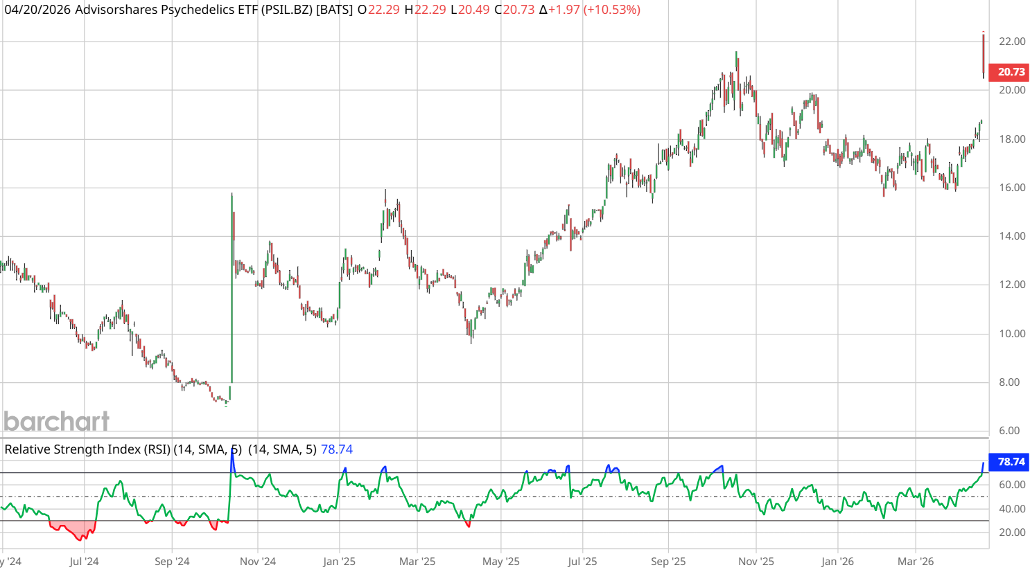 That news has given a major boost to a small, niche corner of the pharmaceuticals market that often faces roadblocks in the form of funding, testing, and regulatory approvals. The AdvisorShares Psychedelics ETF (PSIL) closed up 10%, notching its best day in over a year.