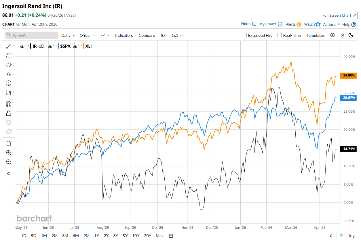 IR’s stock has surged 19.4% over the past 52 weeks, underperforming the S&P 500 Index’s ($SPX) 34.6% rise and the State Street Industrials Select Sector SPDR ETF’s (XLI) 38.8% return during the same time frame.