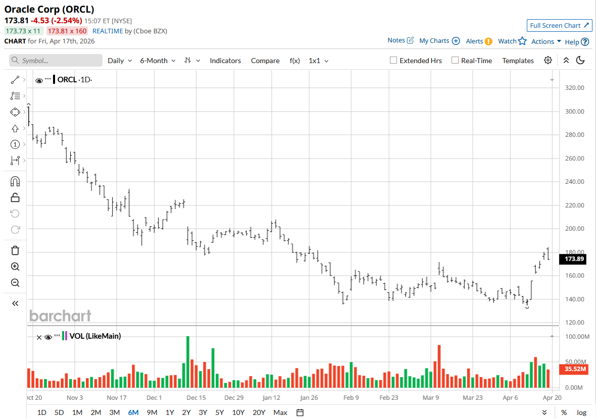 Oracle announced its fiscal third-quarter 2026 earnings on March 10. EPS of $1.79 exceeded Wall Street expectations of $1.70, while revenue came in at $17.19 billion, comfortably ahead of the consensus estimate of $16.91 billion. The most interesting part of the earnings announcement was the remaining performance obligations (RPO) figure, which has now ballooned to $553 billion, allowing analysts to confidently add sustainable future revenue to their financial models.