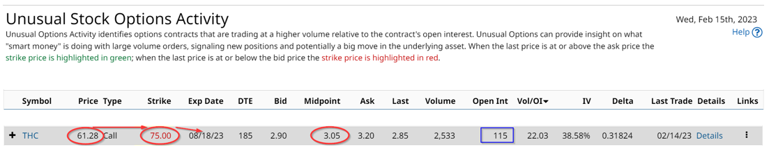 Tenet Healthcare (THC) recently announced on Feb. 9 a very positive quarter and 2022 year-end results. This hospital chain is extremely profitable but the company still does not pay a dividend to its shareholders. As a result, one large institutional investor seems to be making up for this with a massive long-dated covered call trade that is significantly out-of-the-money.