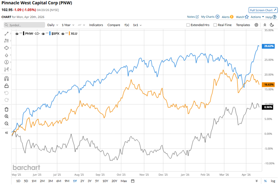 PNW stock has risen 9% over the past 52 weeks, lagging behind the S&P 500 Index's ($SPX) 34.6% gain and the State Street Utilities Select Sector SPDR ETF's (XLU) 17.7% return over the same period.