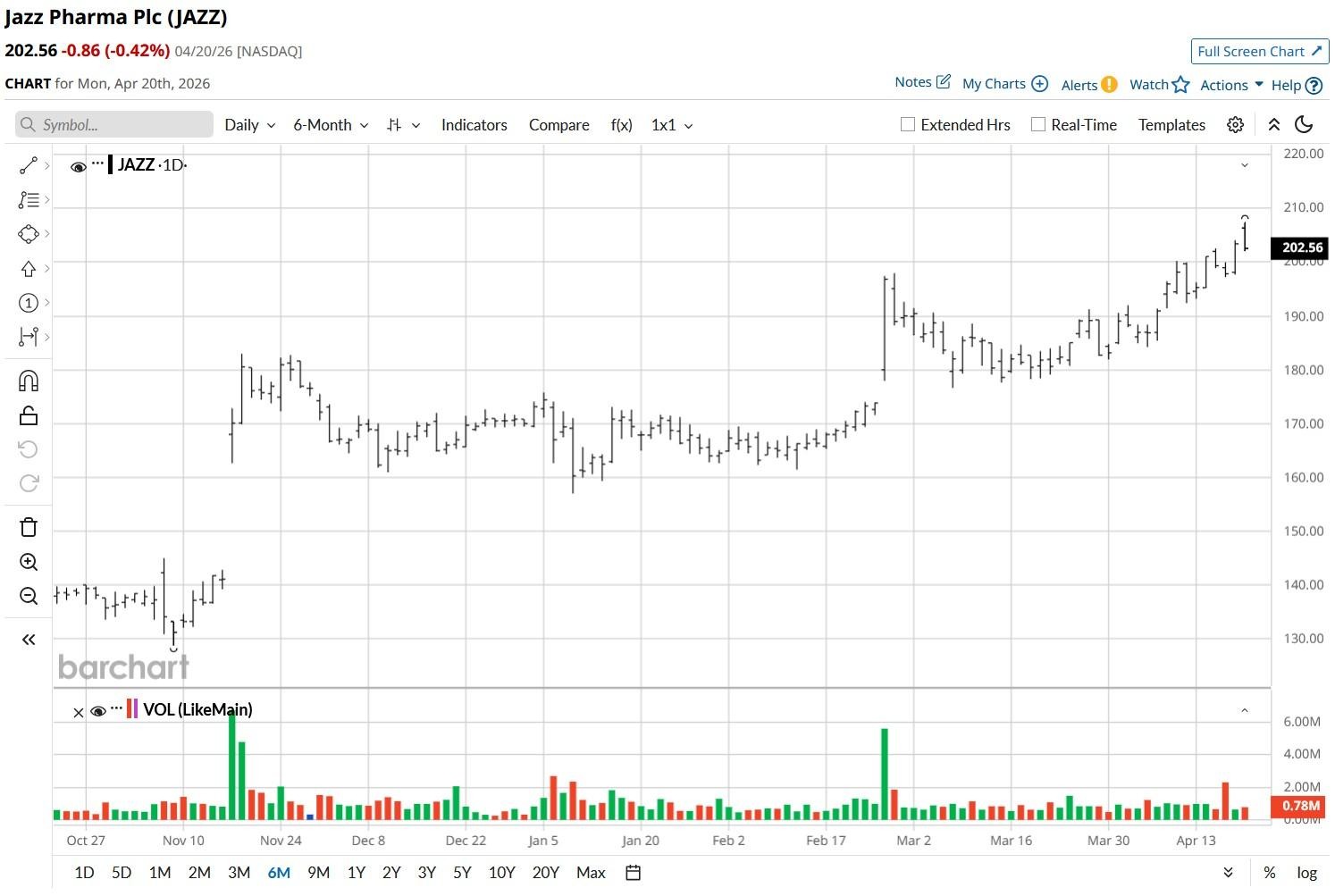 Jazz Pharmaceuticals shares remain a favorite for Barchart’s top technical strategist, John Rowland.
