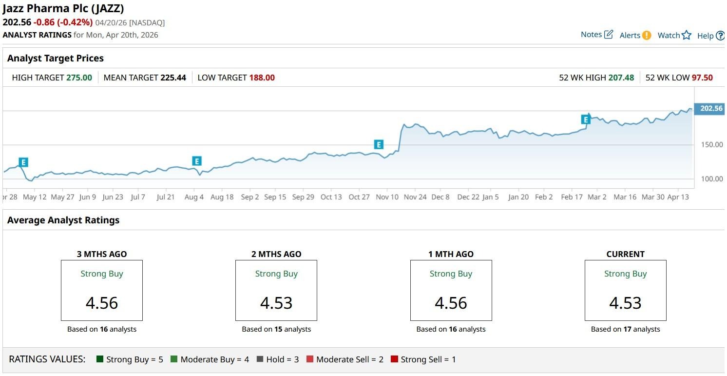 Investors could also take heart in the fact that Wall Street continues to see significant further upside in Jazz Pharmaceuticals over the next 12 months.