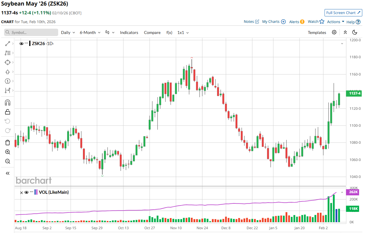 The Trade expected little from the USDA in today's WASDE report and received it. It all revolved around exports and US feed demand. The USDA made it a point to say that global soybean import demand is nearly unchanged from last month, despite the request to China from the President last week to “consider” another 8 million metric tons (243 million bushels) of US bean exports into China for the 25/26 crop year. USDA said the following regarding their decision to leave ending stocks unchanged. USDA states China is reported to be considering buying more US soybeans. Global soybeans import demand is left unchanged from last month, therefore if China bought more from the US, global soybean exports will likely be shifted with me the shipments to China and less to other markets. In my view it’s just a transfer of export demand increasing US bean sales into China while non-China buying is secured more from Brazil than the USA. It will be interesting to see if beans can hold here. Funds are long over 100K again amid a Brazilian bean harvest that is well underway with a record crop coming. Caution is warranted at these price levels in my view if one is long. Look to buy cheap puts in May beans near the 10.60/10.70 area. Should we pull back or retreat from current levels I look for May soybean prices to revert back to where they came from prior to the Trump comments last week. Trade idea below.