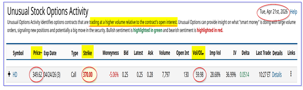 That could be why institutional investors have sold out-of-the-money (OTM) calls expiring this Friday. They deem HD stock's rally may falter.
