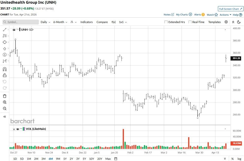 Versus its recent low, UnitedHealth stock is now up a whopping 35%.
