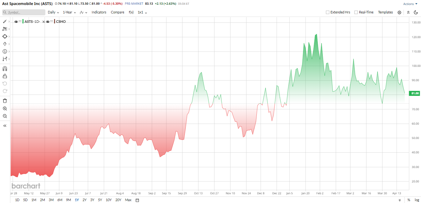 AST SpaceMobile's stock has already had a monster run. Over the past year, shares climbed about 250% as investors piled into space tech and satellite communication names.