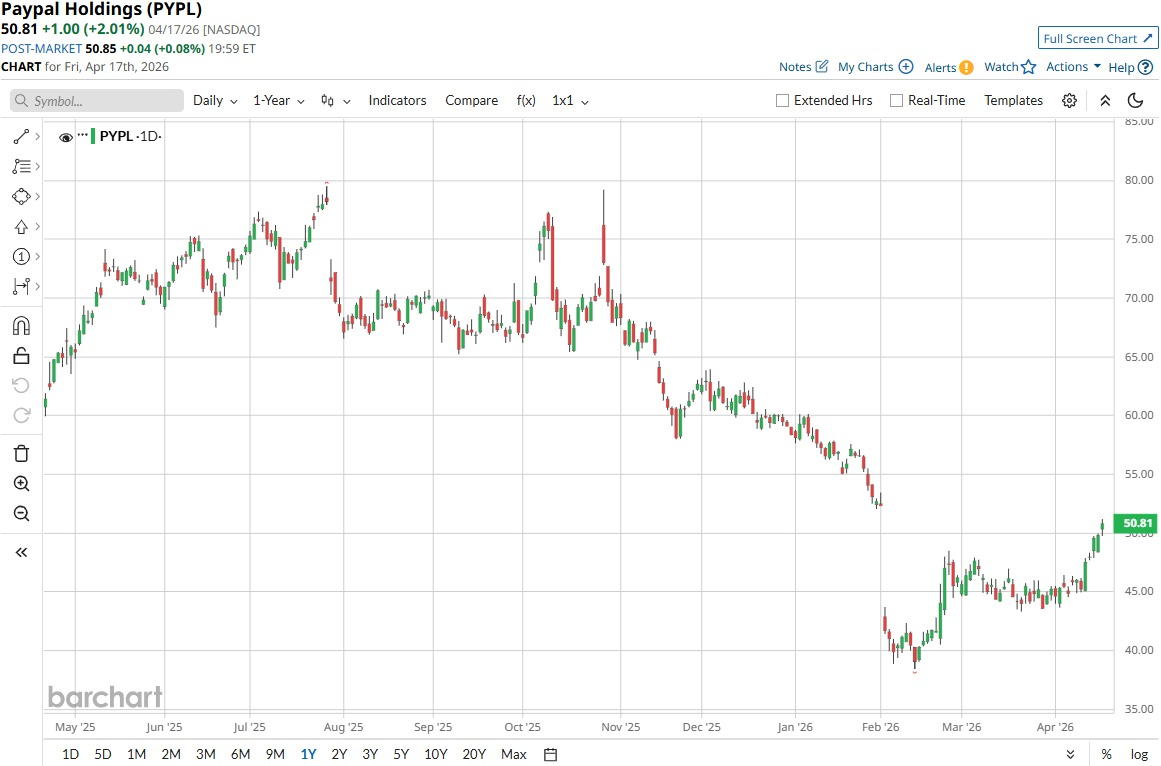 That is why recent moves in the market matter. On April 17, PayPal jumped about 3% in one day after a Gordon Haskett note said SG Americas, a broker often linked to activist activity, seemed to be building swap exposure in PYPL stock. That was enough to get the rumor mill going again.