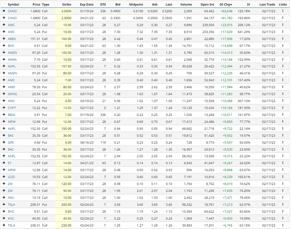 AMC, ABBV, AMZN, MARA, AAPL, AMD, DKNG and BAC saw some of the largest changes in open interest last week.