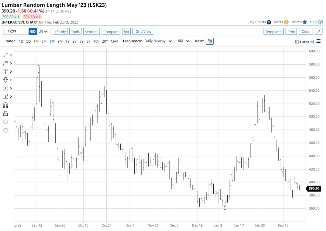 The seasonal low for lumber was slowly developing, but January had a mediocre rally, leading to a seasonal high in February. As the news of higher interest rates and the looming recession, the lumber market has retraced its January rally.Â