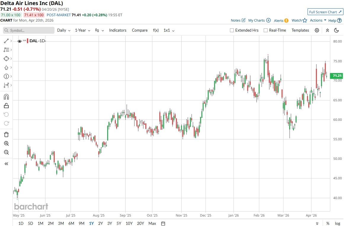 Shares of Delta sit near $68 as of this writing. The stock is now down more than 1.5% year-to-date (YTD) but remains up by 69% over the past 12 months.