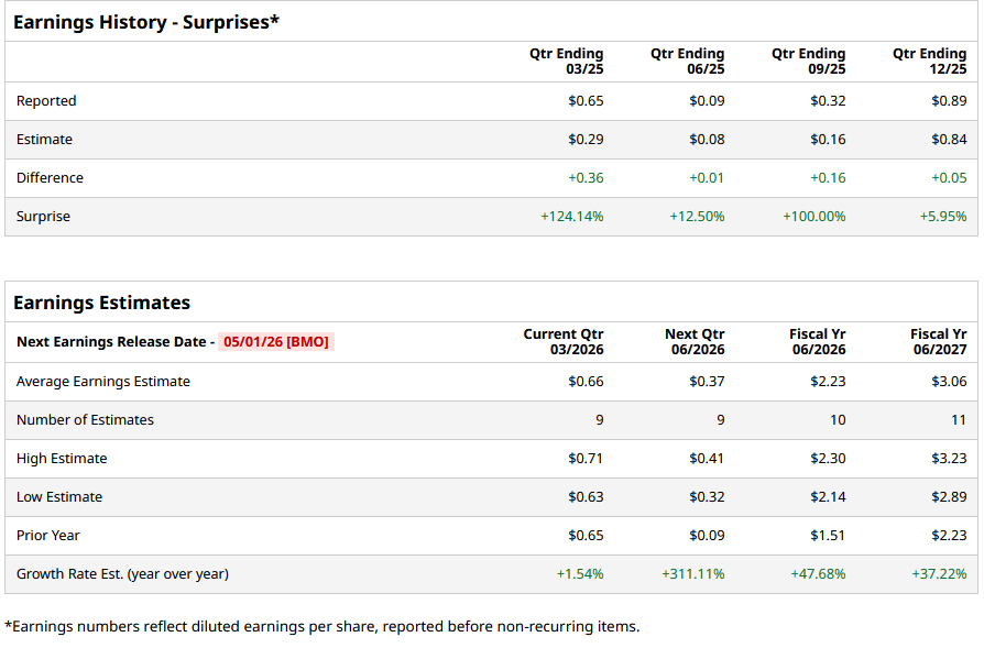For fiscal 2026, analysts project the company’s EPS to be $2.23, up 47.7% from $1.51 in fiscal 2025. Moreover, its EPS is expected to rise by roughly 37.2% year over year (YoY) to $3.06 in fiscal 2027.
