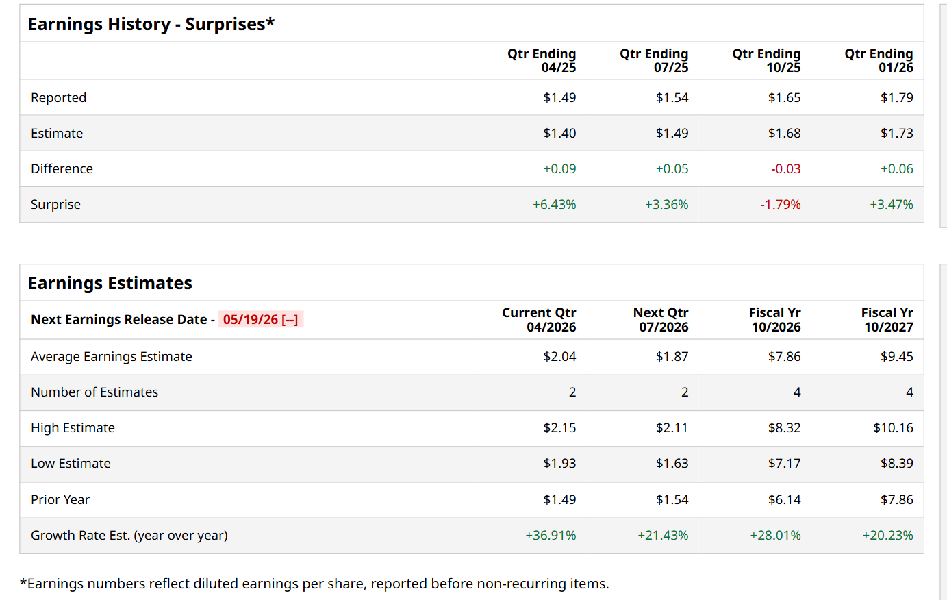 For the current fiscal year, ending in October, analysts expect KEYS to report earnings of $7.86 per share, up 28% from $6.14 per share in fiscal 2025. Its EPS is expected to further grow 20.2% year-over-year to $9.45 in fiscal 2027.