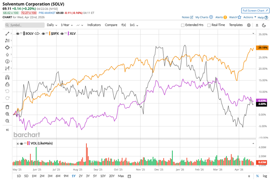 SOLV stock has underperformed the S&P 500 Index’s ($SPX) 35% gains over the past 52 weeks, with shares up 6.4% during this period. Similarly, it underperformed the State Street Health Care Select Sector SPDR ETF’s (XLV) 8.4% gains over the same time frame.
