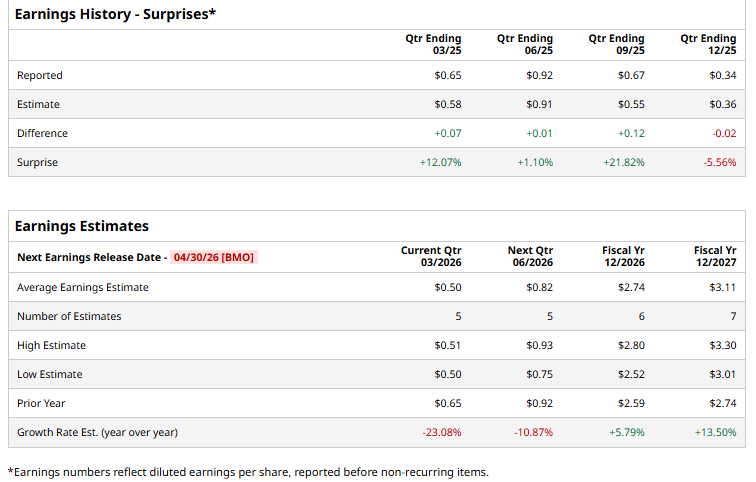 The industrial giant is expected to release its Q1 2026 earnings before the market opens on Thursday, Apr. 30. Ahead of the event, analysts anticipate Carrier Global to report a profit of $0.50 per share, down 23.1% from $0.65 per share in the year-ago quarter. It has exceeded Wall Street's earnings expectations in three of the past four quarters, while missing expectations in another quarter.