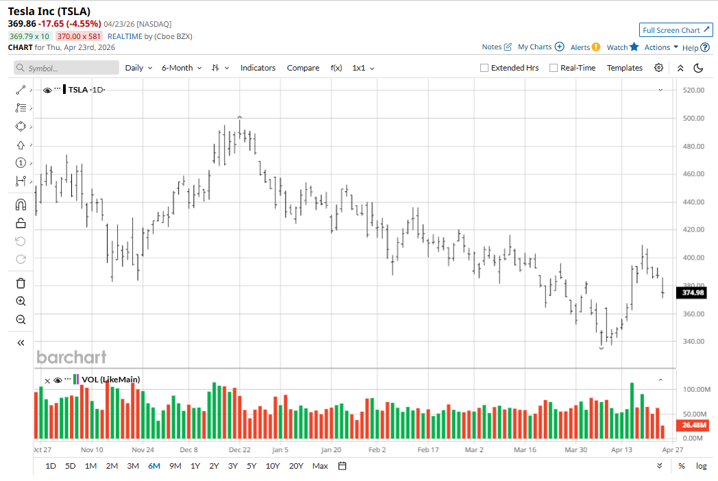 Tesla’s (TSLA) first-quarter 2026 earnings report, released after the close on April 22, delivered a beat on both revenue and earnings per share, but the most consequential revelation for the broader market may have been Elon Musk’s confirmation that Tesla and SpaceX will use Intel’s (INTC) next-generation 14A chip manufacturing process for the ambitious Terafab semiconductor complex in Austin, Texas. This announcement sent Intel shares up over 2% in Thursday morning trading.