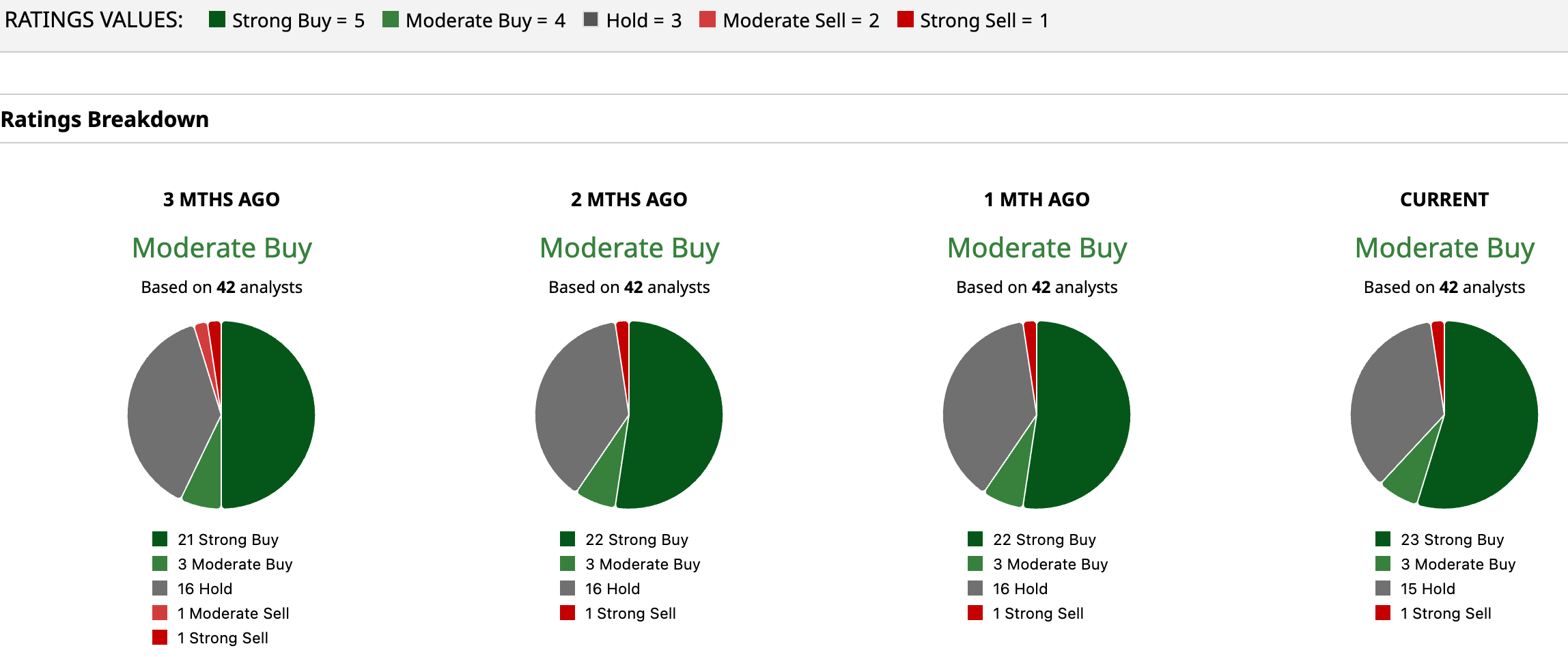 Based on 42 analysts with coverage, AAPL stock has a consensus “Moderate Buy” rating. While 23 analysts have a “Strong Buy” rating for AAPL stock, three analysts have a “Moderate Buy,” and 15 analysts have a “Hold” rating. Among the bears, one analyst has a “Strong Sell” rating.